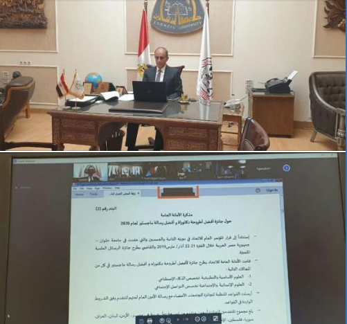عبر تقنيه الفيديو كونفورانس رئيس جامعه الزقازيق...