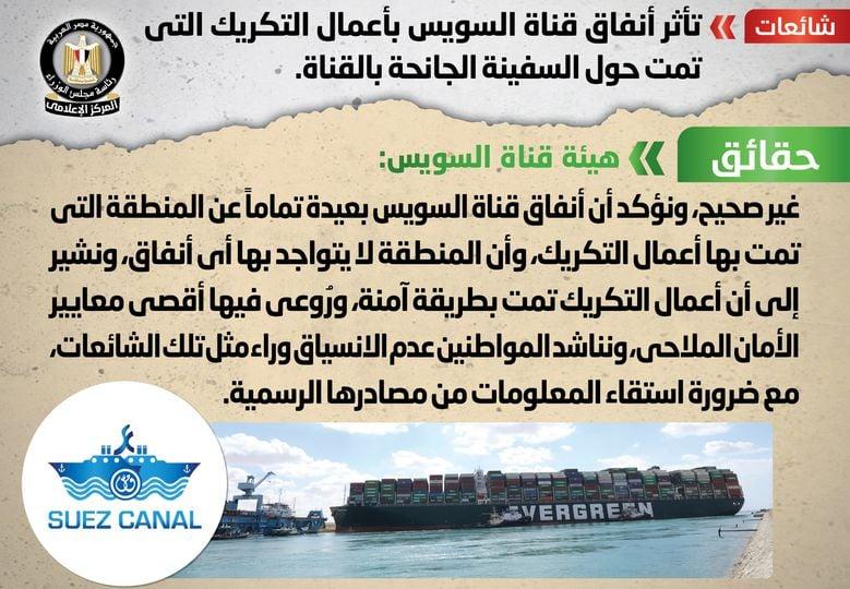 شائعه تأثر أنفاق قناة السويس بأعمال التكريك التي...