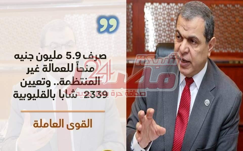 القوى العاملة صرف 5.9 مليون جنيه منحاً للعمالة...