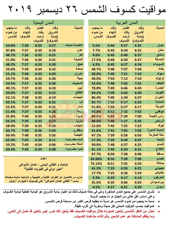 مواقيت كسوف الشمس الخميس القادم على معظم المدن في...
