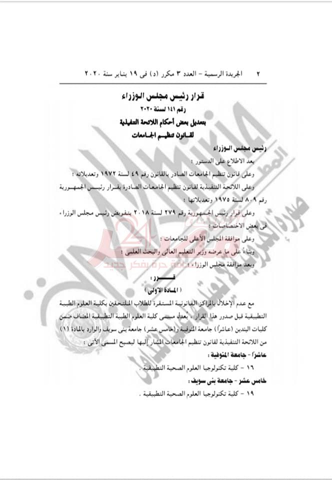 أحمد الدبيكي: قرار رئيس الوزراء رقم 141 لسنة 2020...