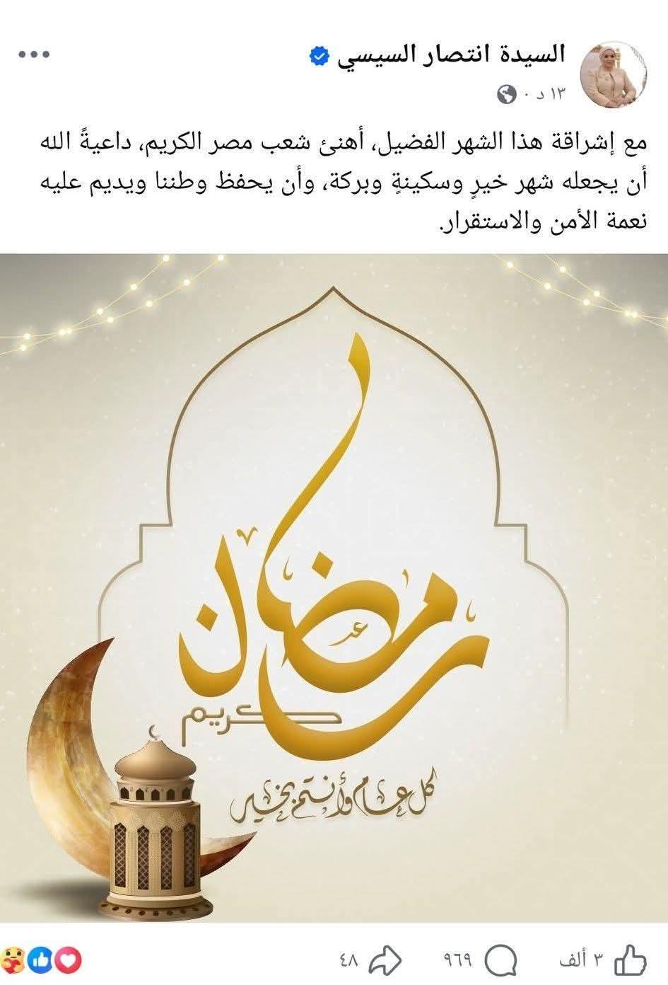 انتصار السيسي تهنئ الشعب المصري بمناسبة شهر...