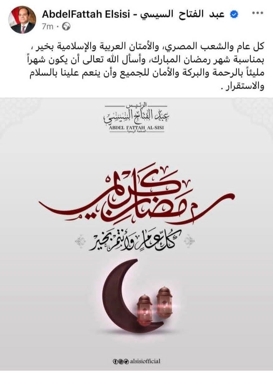 الرئيس السيسي يهنئ الشعب المصري والأمتان العربية...