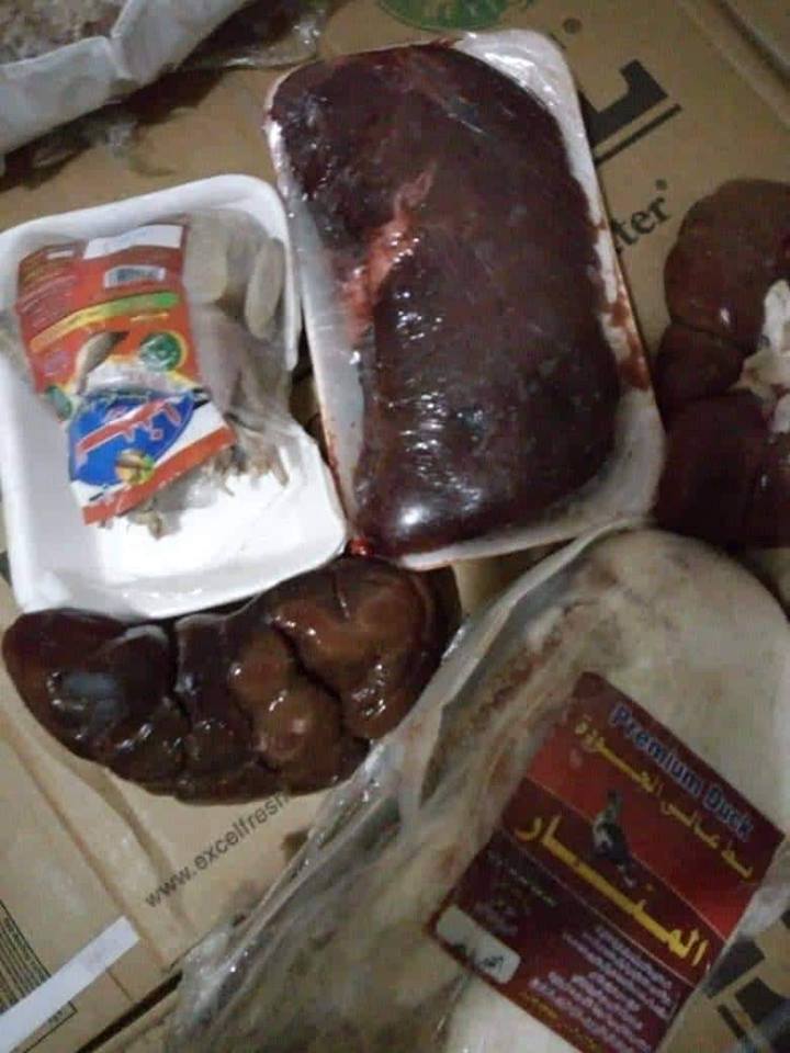 بإجمالي مضبوطات التفتيش على اللحوم خلال هذا الاسبوع تبلغ ٣١ طنا و ٩٦٦ كجم وأسماك مجمدة و دواجن و لحوم بلدي بقري و ضأن و لحوم مجمده و كبدة مجمدة و مصنعات لحوم و أحشاء و دهون.