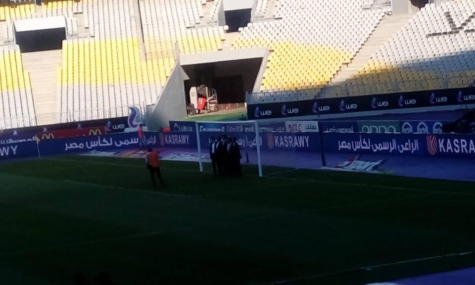 نزل منذ قليل طاقم التحكيم بقيادة محمد فاروق أرض الملعب للكشف على سلامة الشباك