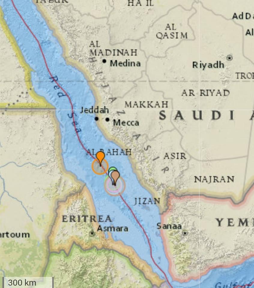 بحسب متابعتنا لمراكز الرصد الزلزالي و هيئة المسح الجيولوجي الامريكية USGS التي تؤكد رصدها اليوم الاحد 10 مارس الساعة 3:32 عصرا بتوقيت مكة المكرمة هزة أرضية بقوة 4.6 على مقياس رختر جنوب البحر الأحمر مركز الزلزال كان على عمق 10 كيلومتر تحت سطح الأرض و يقع مركز الزلزال في منتصف البحر الأحمر بين السواحل السودانية و السعودية أقرب قليلاً الى السواحل السودانية. كما نشير الى أن زلزال (هزة) بهذة شدة يعد زلزال متوسط الشدة قد لا يكون مؤثراً بشكل مباشر على المنطقة العربية لأنه يبعد حوالي 100 ميل من السواحل السودانية. الا أن المثير للقلق أنه يعد خامس زلزال خلال أربع أيام و احداثيات مراكز الزلازل على مسافات متقاربة (نفس المنطقة تقريبا) و كان اولها مساء الاربعاء الماضي هزة أرضية بلغ شدتها 5 درجات و تلتها بساعات هزتان بشدة 4.7 و 4.5 مطلع يوم الخميس الماضي و هزة اخرى يوم الجمعة بشدة 4.6 درجة.