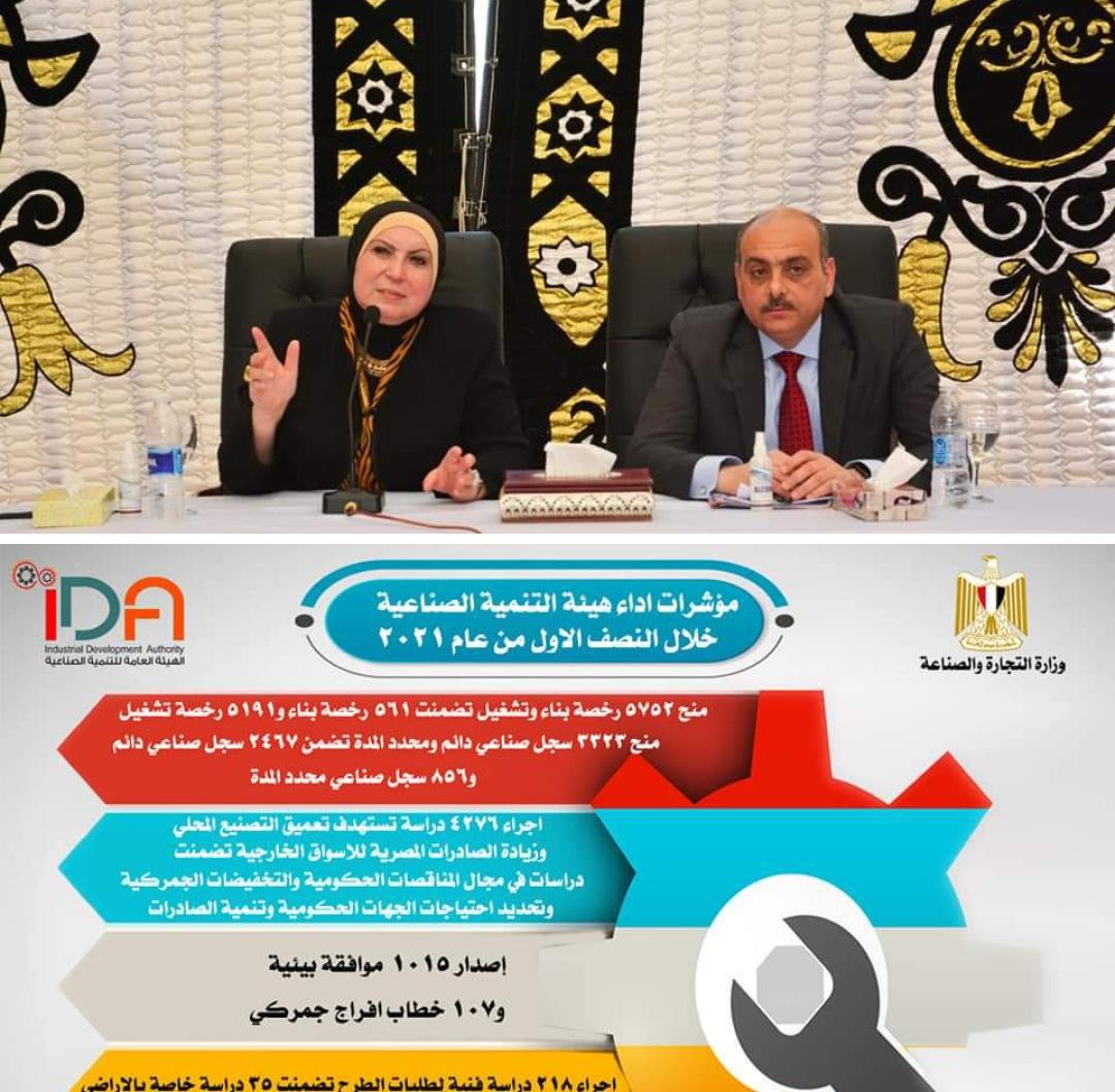 وفى هذا الإطار أوضح اللواء / محمد الزلاط رئيس الهيئة العامة للتنمية الصناعية أن المؤشرات الإيجابية التى حققتها الهيئة خلال الـ6 اشهر الأولى من العام الجارى تأتى تتويجاً للجهود الكبيرة التى تقوم بها الهيئة لخدمة القطاع الصناعى فى إطار الخطة الشاملة لوزارة التجارة والصناعة الهادفة إلى الإرتقاء بالقدرة التنافسية للصناعة المصرية وإستعادة مكانتها على خريطة الصناعة العالمية خاصة فى ظل الإمكانات الصناعية الكبيرة التى تتمتع بها مصر