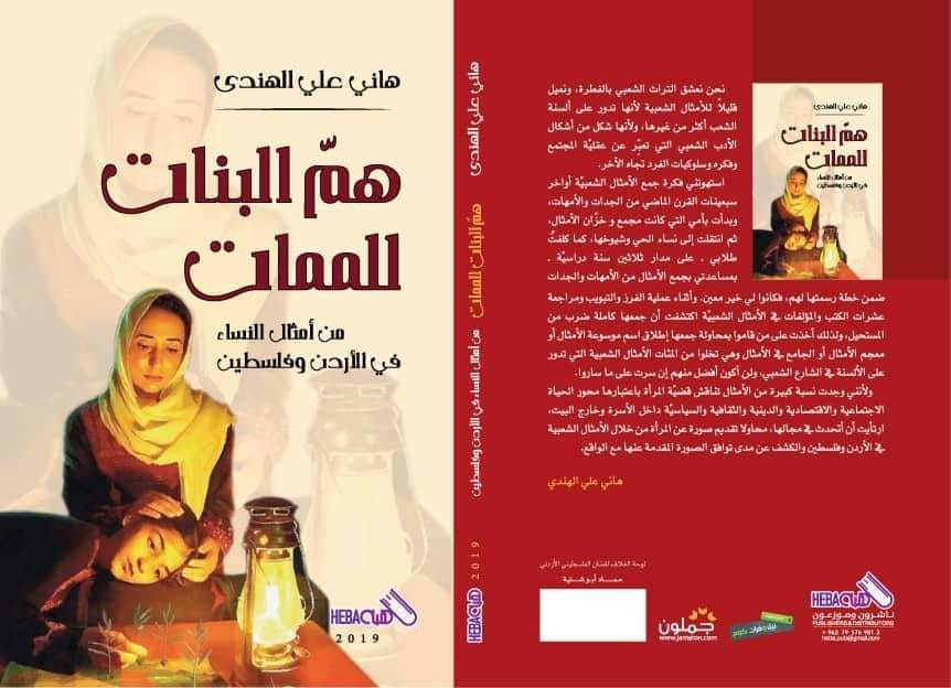 صدر للباحث والقاص هاني علي الهندي كتاب (هم البنات للممات‘ من أمثال النساء في الأردن وفلسطين) للباحث والقاص هاني علي الهندي ويتكون في 200 صفحة من القطع لمتوسط، يتناول فيها قضيّة المرأة باعتبارها محور الحياة الاجتماعية والاقتصادية والدينية والثقافية والسياسيّة داخل الأسرة وخارج البيت، محاولا تقديم صورة عن المرأة من خلال الأمثال الشعبية في الأردن وفلسطين و الكشف عن مدى توافق الصورة المقدمة عنها مع الواقع.