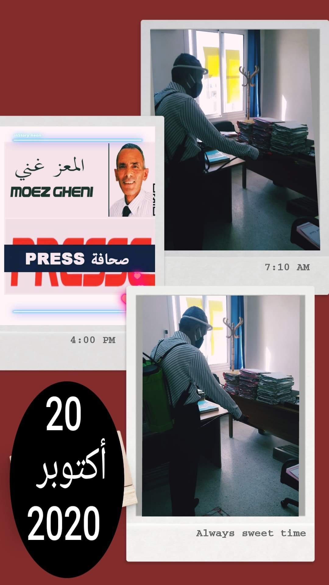 مع العلم أن هذا المجهود الذي أقوم به بصفة تطوعية و شعورا مني بالمسؤولية إتجاه السلك الذي أنتمي إليه ألا وهو وزارة العدل، فمواد التعقيم الممثلة في جال التعقيم