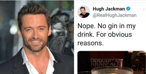 غرَّد النجم العالمي هيو جاكمان على حسابه الشخصي تويتر قائلاً " لا. لا الجن في شرابي. لاسباب واضحة."