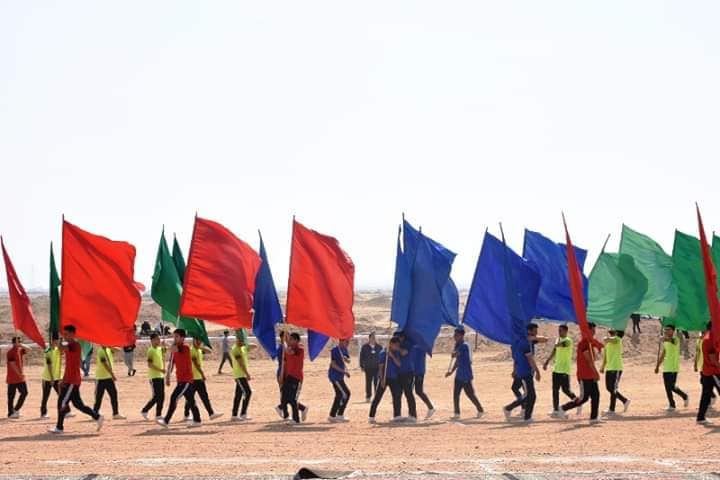 وتضمنت فاعليات المهرجان دخول طابور حمله الأعلام من الشباب والرياضة.. يصطغون في أربع قطارات حاملين الأعلام الحمراء والخضراء والزرقاء.