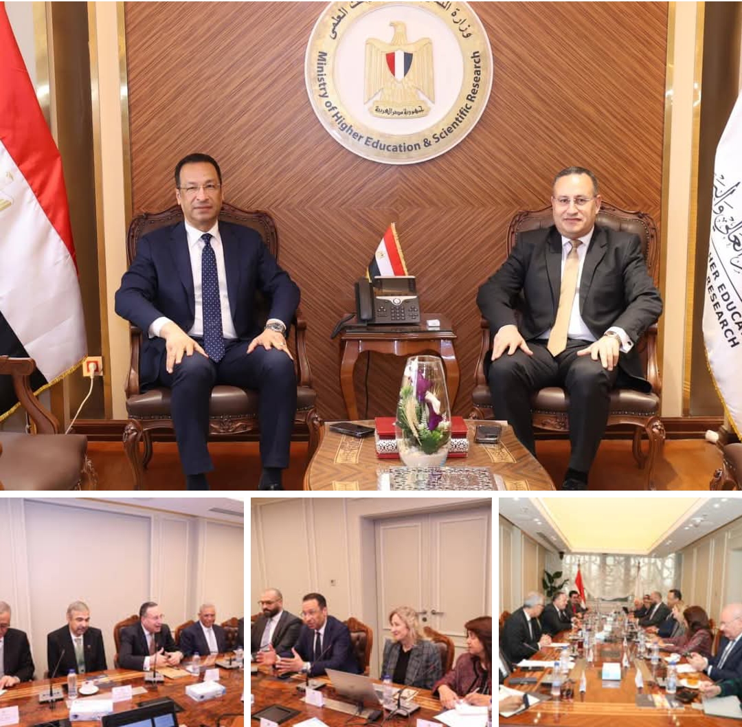 في خطوة استراتيجية نحو تعزيز التحول الرقمي في قطاع التعليم الجامعي، عقد الدكتور عبد العزيز قنصوة، وزير التعليم العالي والبحث العلمي، والمهندس رأفت هندي، وزير الاتصالات وتكنولوجيا المعلومات، اجتماعًا موسعًا بمقر وزارة التعليم العالي بالعاصمة الجديدة.