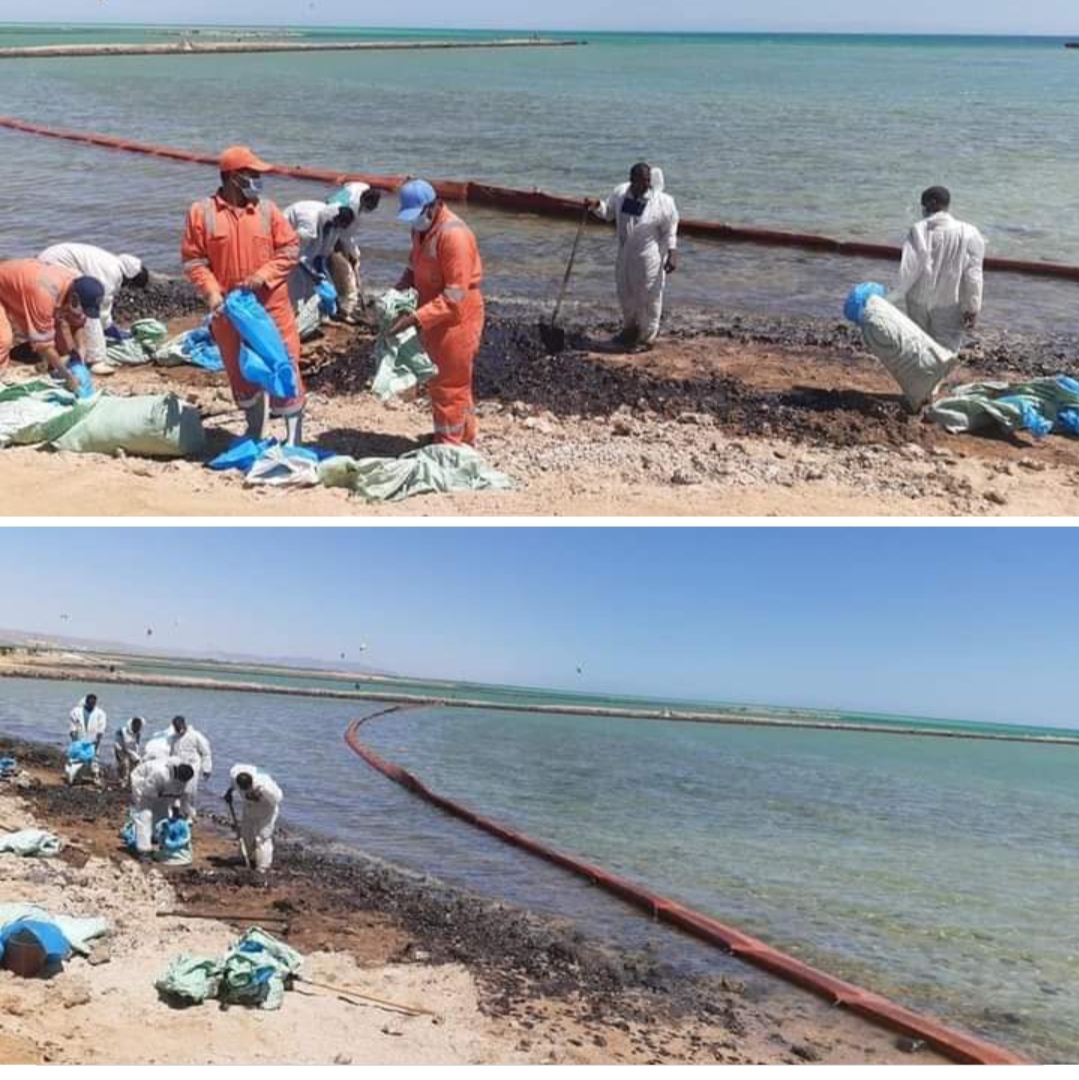 وقد أستمرت جهود مكافحة التلوث لليوم الثالث على التوالى بإستخدام ماكينة شفط الزيت والحواجز المطاطية والحواجز الماصة ، بالإضافة إلى العمالة اليدوية وقد تم إسترجاع كميات من الزيت المختلط بالماء تقدر بحوالى 4 طن، كما يتم تجميع المخلفات ( الصلبة والسائلة ) أول بأول ويتم تجميعها في أحد الشركات التابعه للهيئة لحين التخلص النهائي منها بالتنسيق مع جهاز تنظيم إدارة المخلفات.