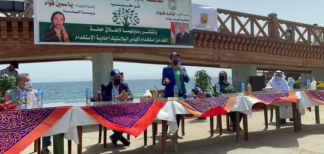 كما اكدت اللواء خالد فودة محافظ جنوب سيناء على أهمية حماية البيئة لمدينة دهب و التى يعد 43% من مساحتها محميات معربا عن تقديره لجهود الوزيرة بالمحافظة.