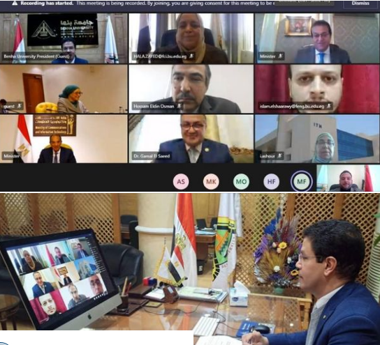 شهد الدكتور خالد عبد الغفار وزير التعليم العالى والبحث العلمى ، والدكتور عمرو طلعت وزير الاتصالات وتكنولوجيا المعلومات، اليوم الأحد عبر تقنية الفيديو كونفرنس، مراسم توقيع بروتوكول التعاون بين وزارة التعليم العالى والبحث العلمى - جامعة بنها ووزارة الاتصالات وتكنولوجيا المعلومات - معهد تكنولوجيا المعلومات.