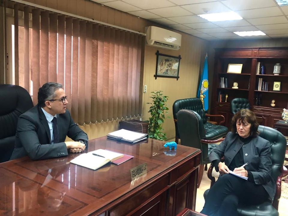 استقبل الدكتور خالد العناني وزير الاثار اليوم الاربعاء بمكتبه بالوزارة الدكتوره ڤيلكا ويندرش رئيس الجمعية الدولية لعلماء المصريات و التي حرصت علي هذا اللقاء بعد توليها مهام منصبها كرئيس للجمعية، لبحث تعزيز سبل التعاون بين الوزارة و الجمعية.