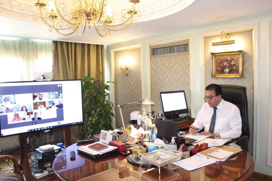 عقد الدكتور خالد عبد الغفار وزير التعليم العالى والبحث العلمى اجتماعا صباح اليوم الاثنين مع الدكتور/ حمد بن محمد آل الشيخ وزير التعليم السعودى، بحضور د. أحمد الفريح الملحق الثقافى السعودى بمصر، وعدد من القيادات التعليمية بوزارتى التعليم السعودية، ووزارة التعليم العالى المصرية، وذلك عبر تقنية الفيديو كونفرانس.
