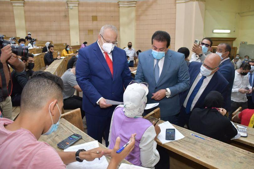 وتفقد الوزير ورئيس الجامعة، أعمال الامتحانات، واطمأن الوزير على حسن سير أعمال الامتحانات، والالتزام بتطبيق كافة الإجراءات الاحترازية والوقائية بلجان الامتحانات للوقاية من فيروس كورونا، مشيدًا بدور إدارة الجامعة في تحقيق الانضباط والانتظام أثناء سير الامتحانات، وتوفير كافة السبل للطلاب لأداء امتحاناتهم.