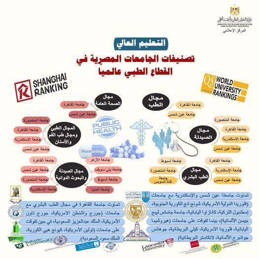 وأوضح التقرير دخول جامعات (المنصورة، القاهرة، الإسكندرية،عين شمس) ضمن الجامعات الأفضل في المجال الطبي لتصنيف شنغهاي الدولي للعام 2020.