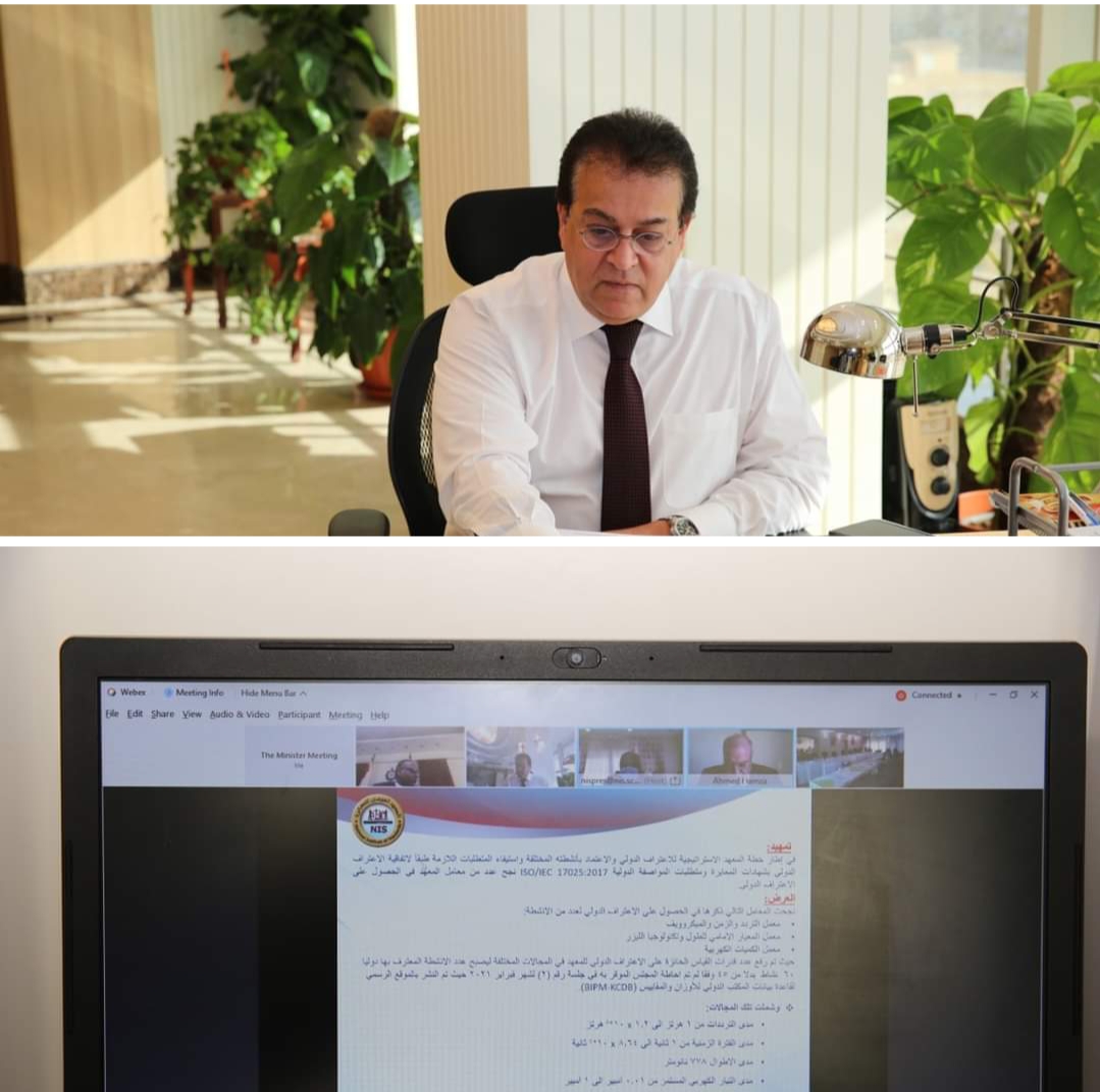 ترأس د. خالد عبدالغفار وزير التعليم العالي والبحث العلمي مساء أمس الثلاثاء مجلس إدارة المعهد القومي للمعايرة، بحضور د. ياسر رفعت نائب الوزير لشئون البحث العلمى، ود.محمود صقر رئيس أكاديمية البحث العلمى والتكنولوجيا، ود. نهى عماد رئيس المعهد، وذلك عبر الفيديو كونفرانس.