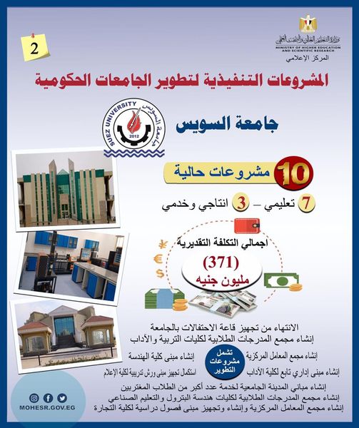 وأوضح التقرير أن التكلفة الإجمالية للمشروعات الجاري تنفيذها في جامعة السويس تبلغ نحو (371) مليون جنيه.