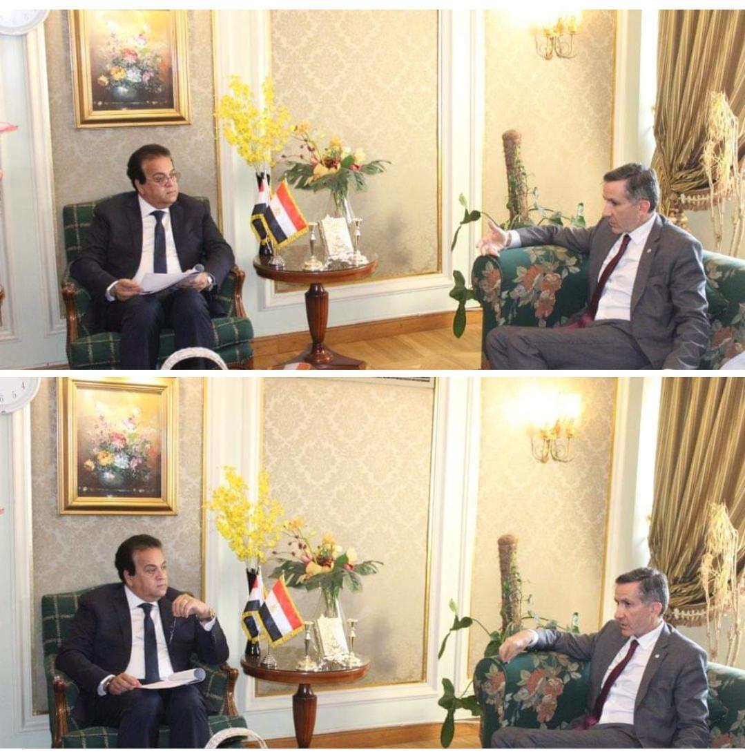 استقبل الدكتور خالد عبدالغفار وزير التعليم العالى والبحث العلمى، مساء أمس الأحد، السيد جين نويل باليو مدير المكتب الإقليمي للشرق الأوسط للوكالة الجامعية الفرنكوفونية الجديد؛ لبحث سبل دعم علاقات التعاون بين الجامعات المصرية والوكالة فى كافة المجالات الثقافية والعلمية والتعليمية؛ وذلك بمقر الوزارة.