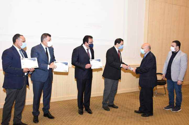 قام الدكتور خالد عبد الغفار وزير التعليم العالي والبحث العلمي صباح اليوم الخميس بتكريم الحاصلين على أحسن رسائل ماجستير ودكتوراه فى القطاع الهندسي، وذلك خلال مشاركته فى اجتماع لجنة قطاع الدراسات الهندسية، بحضورد. محمود المتيني رئيس جامعة عين شمس، ود. محمود صقر رئيس أكاديمية البحث العلمي و التكنولوجيا، ود. ضياء خليل القائم بعمل عميد كلية الهندسة جامعة عين شمس، ود. عبد الحميد شعيرة رئيس لجنة قطاع الدراسات الهندسية، ود. محمد صالحين أمين لجنة قطاع الدراسات الهندسية، والسادة أعضاء اللجنة، وذلك بمقر كلية الهندسة جامعة عين شمس.