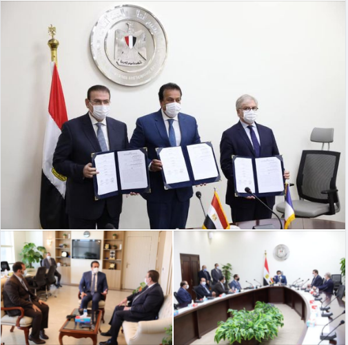 وقع د. خالد عبدالغفار وزير التعليم العالي والبحث العلمي، ود. دوني داوبي رئيس الجامعة الأهلية الفرنسية في مصر، والمهندس/ هانى ضاحى نقيب المهندسين ورئيس شركة وادى النيل للمقاولات والاستثمارات العقارية، صباح اليوم الخميس، عقد اتفاق تنفيذ استكمال مباني مشروع الجامعة الأهلية الفرنسية في مصر، وذلك بمجمع التعليم الخاص في القاهرة الجديدة.