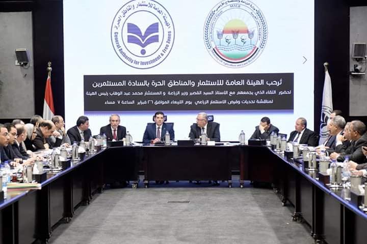 عقد السيد القصير، وزير الزراعة، والمستشار محمد عبد الوهاب، الرئيس التنفيذي للهيئة العامة للاستثمار والمناطق الحرة، اجتماعا مع المستثمرين بالقطاع الزراعي، بمقر الهيئة العامة للاستثمار، بحثا خلاله التحديات التي تواجههم وفرص الاستثمار الزراعي المتاحة في مصر.