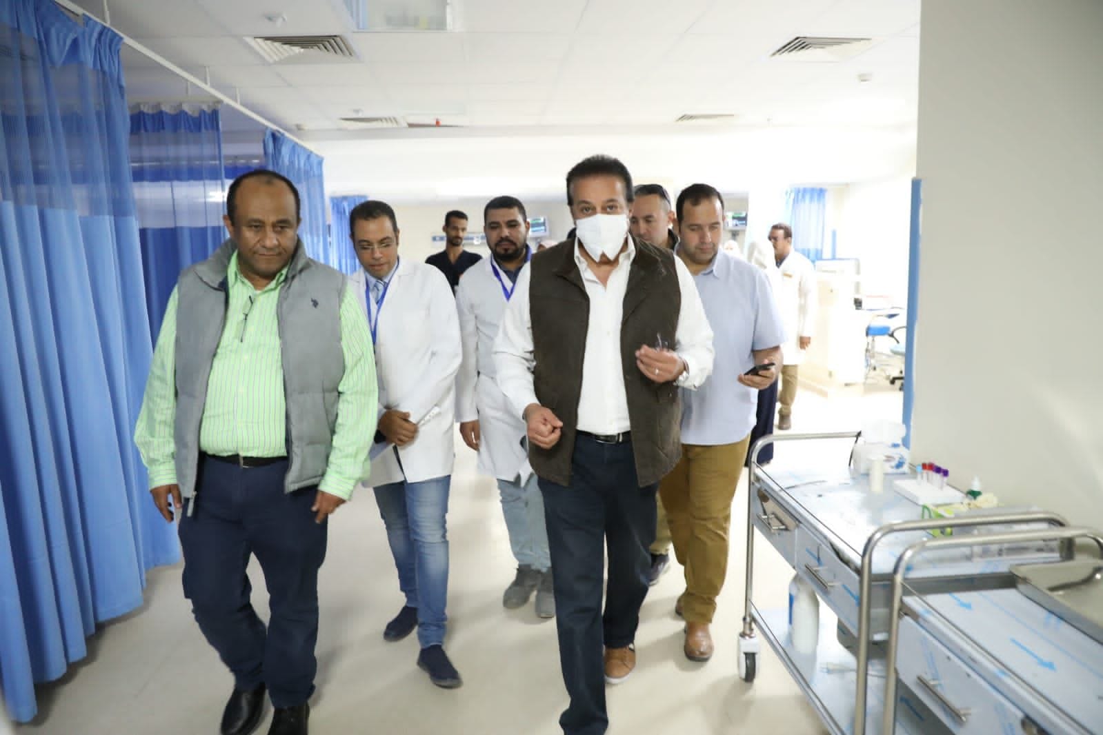 رافق الوزير خلال جولته، الدكتور أنور إسماعيل مساعد وزير الصحة والسكان للمشروعات القومية، والدكتور محمد ضاحي رئيس الهيئة العامة للتأمين الصحي، والدكتور محمد مصطفى عبدالغفار رئيس الهيئة العامة للمستشفيات والمعاهد التعليمية، والدكتور أحمد سعفان رئيس قطاع الطب العلاجي، والدكتورة مها إبراهيم رئيس أمانة المراكز الطبية المتخصصة، والدكتورة منن عبدالمقصود رئيس الأمانة العامة للصحة النفسية.