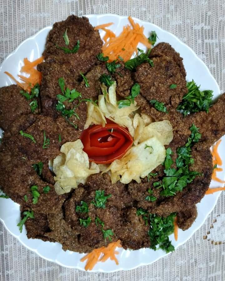 - نضع شرائح الكبده في الرده و فورا تحمر في زيت غزير علي كلا الجهتين ..
