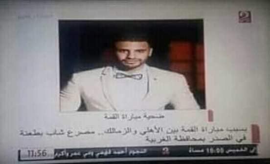 توفي شاب من محافظة الغربية أمس بسبب مشادة مع أهلاوي بعد نهاية مباراة الزمالك والأهلي حيث حدثت مشادة توفي على أثرها .