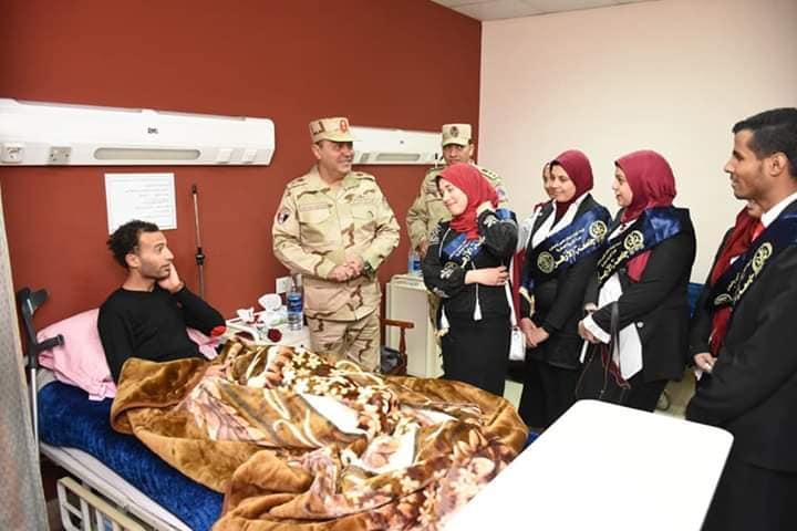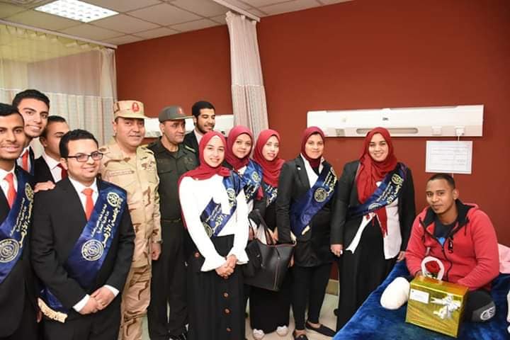 في لفتة تجب كل ما يثار حول وطنية الطالب الازهري وبرعاية الدكتور محمد المحرصاوي رئيس الجامعة و الدكتور يوسف عامر نائب رئيس الجامعة لشئون التعليم والطلاب، قام وفد من طلاب وطالبات جامعة الأزهر من مختلف الكليات برفقة العقيد محمد سامي مدير ادارة التربية العسكرية بجامعة الأزهر بزيارة لمستشفي الحلمية العسكري للاطمئنان علي ابطالنا من مصابي العمليات الأرهابية في سيناء وذلك بصحبة اللواء اركان حرب وليد حمودة قائد قوات الدفاع الشعبي ،الذي اشاد بالدور البطولي الذي قام به هؤلاء المصابون وايضا شهداء العزة الذين فدوا بأرواحهم تراب هذا الوطن العزيز واكد اللواء وليد حمودة علي ان كل منا يتقن في عمله حتي ننهض ببلدنا الحبيب وتحيا مصر رغم انف كل حاقد.