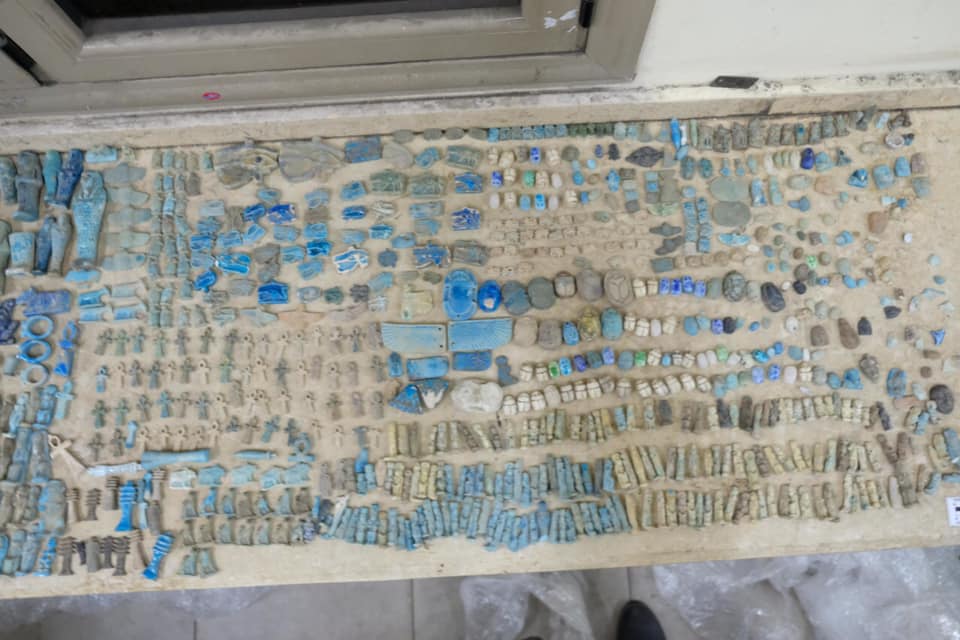 هذا بالاضافة إلى خرز أثري بكميات ضخمة ومجموعة كبيرة من التمائم المصنوعة من الفاينس وأربعة قطع معدنية من النحاس المطعم بالفضة عليها زخارف نباتية وكتابات بالخط العربي ترجع إلى العصور الاسلامية.