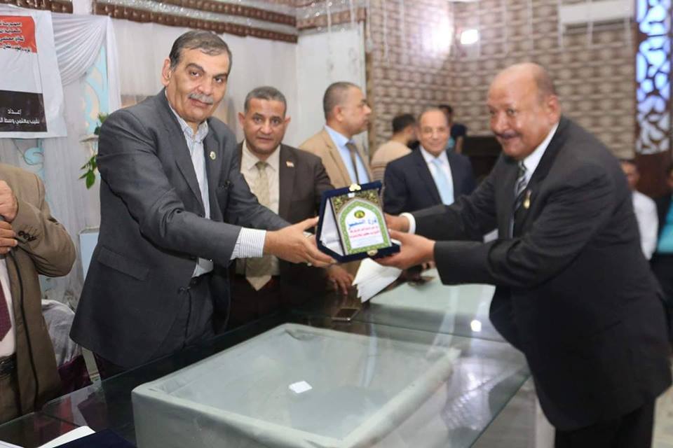 تكريم السيد النقيب شاكر محمد ابوبكر نقيب المعلمين بنجع حمادى شمال قنا من السيد الدكتور هشام السنجاري وكيل اول وزارة التربية والتعليم نائب عن السيد الدكتور طارق شوقى وزير التربية والتعليم
