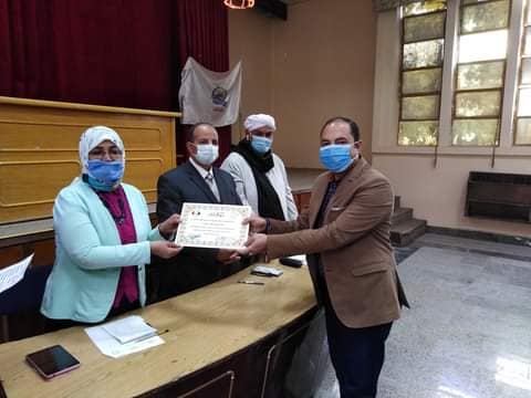 كرم الدكتور صبري خالد وكيل وزارة التربية والتعليم مسئولي الاحصاء بالإدارات التعليمية في حضور الاستاذة منال عبد الوهاب وكيل المديرية و الحاج سعيد حسن رئيس مجلس أمناء المحافظة و أحمد ابو الفضل مدير إدارة الاحصاء بالمديرية .
