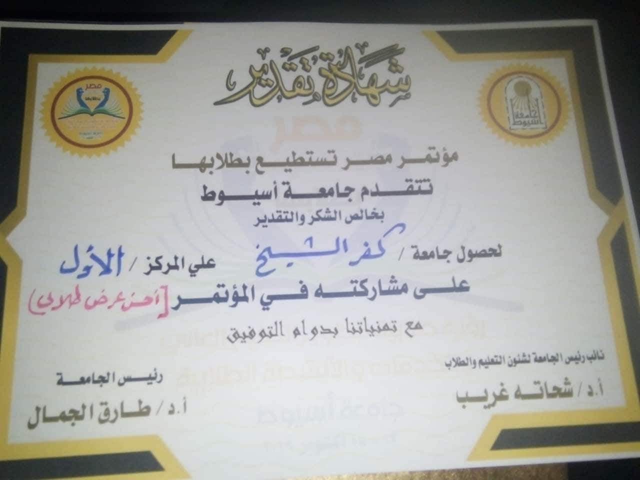 تحت رعاية السيد الأستاذ الدكتور/عبدالرازق الدسوقي رئيس جامعة كفرالشيخ.شاركت جامعة كفرالشيخ في المؤتمر الطلابي لمصر تستطيع بطلابها بجامعة أسيوط"رؤيه طلابيه لتطوير التعليم العالي والخدمات والأنشطة الطلابيه". والذي نظمته جامعة أسيوط في الفتره من ١٣_١٥ اكتوبر بمشاركة ٢٠ جامعة حكومية وخاصة.