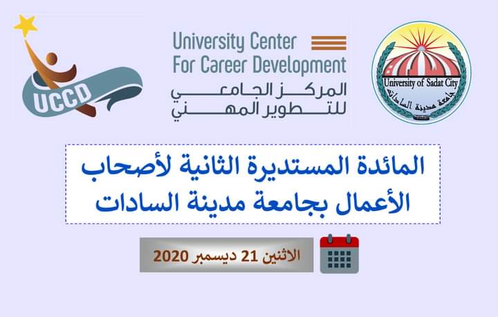 ينظم المركز الجامعي للتطوير المهني المائدة المستديرة الثانية لأصحاب الأعمال وذلك بمشاركة أكثر من 15 شركة ومؤسسة بمدينة السادات وذلك يوم الاثنين القادم الموافق 21 ديسمبر 2020 الساعة العاشرة صباحا بقاعة الأجتماعات بجامعة مدينة السادات