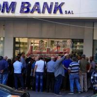 لبنانيون يصطفون أمام مصرف في مدينة صيدا