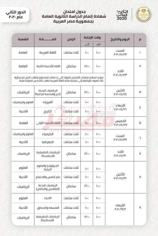 التربيه والتعليم تعلن جدول امتحانات الدور الثانى...