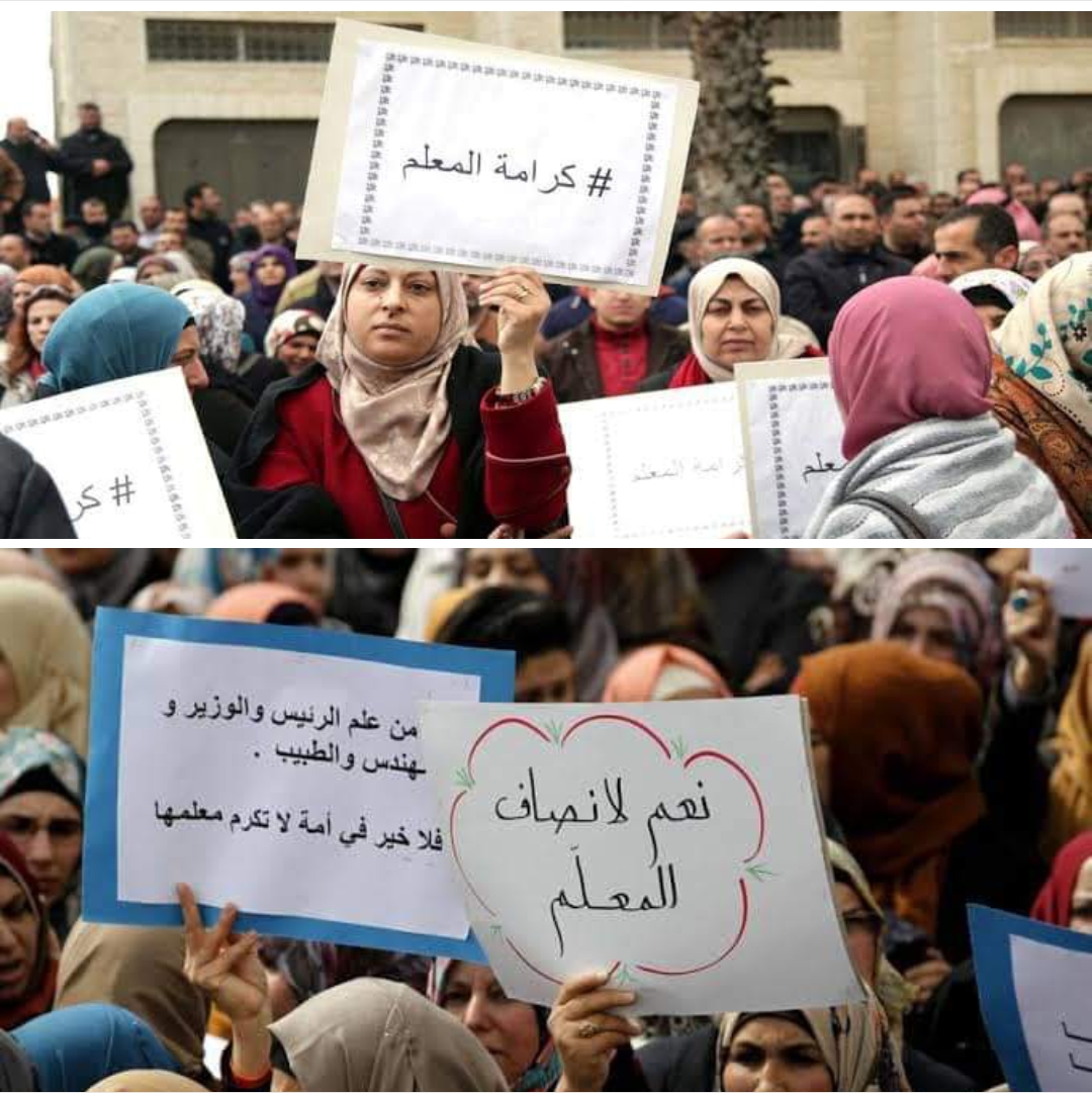 لكن على الجانب الآخر، ولسنوات، كافح المعلمون في جميع أنحاء الضفة الغربية لتغطية نفقاتهم من خلال رواتب تبلغ نحو 830 دولاراً شهرياً، وهو أقل بكثير من مهن أخرى تتطلب الدرجة العلمية نفسها. والآن بعد عام ونصف العام من خفض السلطة الفلسطينية لرواتب موظفي الحكومة بنسبة 20% لمواجهة عجز في الموازنة، يقول المعلمون إن «الكيل فاض وإنهم ضاقوا ذرعاً».