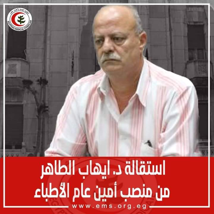 استقالة د إيهاب الطاهر من منصب أمين عام الأطباء متابعة / حمادة سعد أعلن د .ايهاب الطاهر استقالته من منصب الأمين العام لنقابة الأطباء وجاء فى نص الاستقالة .. وصلتني معاتبات كثيرة من العديد من الزملاء الأطباء الذين ظنوا أنني ( باعتباري الأمين العام ) من كنت وراء النعي الذي نشر علي موقع النقابة العامة للقيادي الإخواني د. عصام العريان ، وما ترتب على ذلك من ردود فعل سلبية بين أوساط الأطباء والمواطنين . فإنني أوكد نفي أن أكون وراء ما تم نشره كما أنني لم أشارك إطلاقاً في هذا الأمر ، مؤكدا اعتذار مجلس النقابة عن ما تم نشره بنعي القيادي الاخواني د. عصام العريان . فهذا الامر كان مقترح اندفع خلفه بعض شباب الأطباء بحسن نية ، ثم بعد أن تبين لهم الخطأ الذي وقعوا فيه تراجعوا واعتذروا عنه على موقع النقابة كما يؤكد مجلس النقابة وشباب الأطباء على اعتذارهم على ما نشر ، وأعيد التأكيد علي رفضي ذلك .