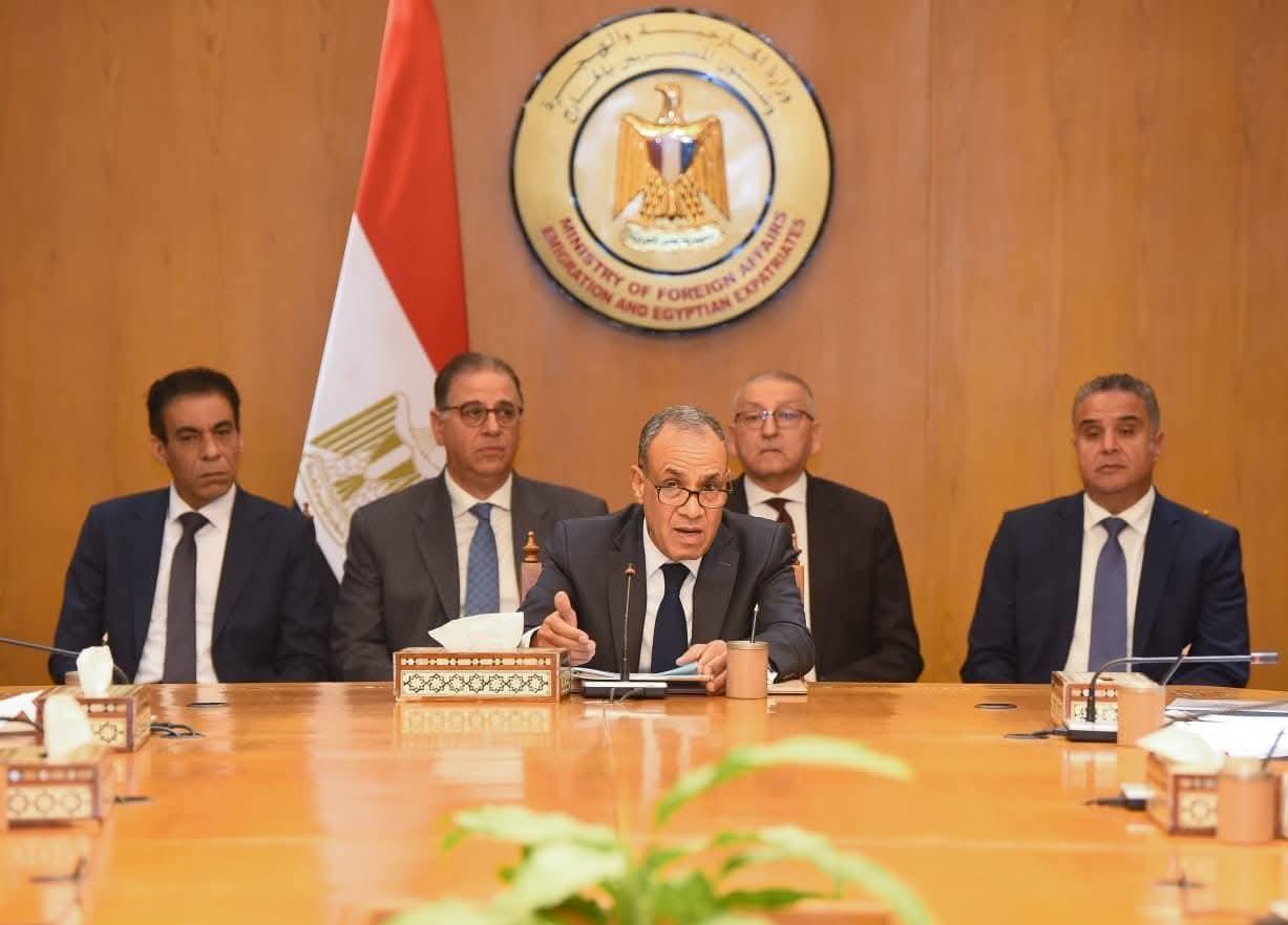 في إطار اهتمام الدولة بأوضاع المصريين في الخارج والحرص على تعزيز التواصل معهم وتطوير الخدمات المقدمة لهم، عقد د. بدر عبد العاطي وزير الخارجية والتعاون الدولي والمصريين بالخارج اجتماعاً تنسيقياً بمشاركة كل من السيد محمد عبد اللطيف وزير التربية والتعليم والتعليم الفني، والمهندس رأفت هندي وزير الاتصالات وتكنولوجيا المعلومات، والدكتور عبد العزيز قنصوة وزير التعليم العالي والبحث العلمي، إلى جانب ممثلين عن وزارات الدفاع والداخلية والمالية والإسكان والمجتمعات العمرانية والكهرباء والطاقة المتجددة والبنك المركزي، وذلك لبحث عدد من الموضوعات المتصلة بشئون المصريين في الخارج وسبل تطوير آليات التعامل معها.