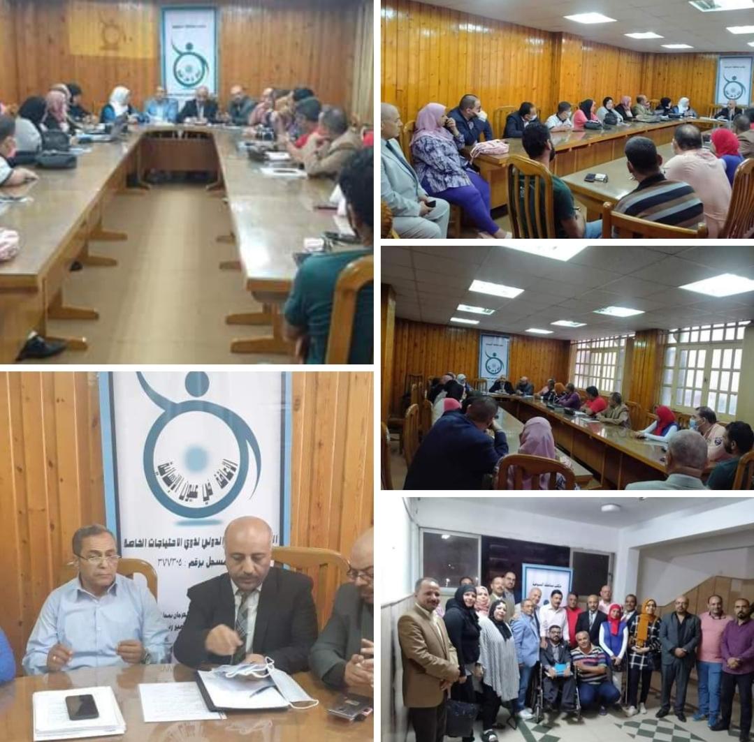 قام المهرجان العربى الدولى لذوى الإحتياجات الخاصة تحت شعار الإعاقة فى عيون الإنسانية بعقد جمعية عمومية غير عادية مع السادة مسئولين وأعضاء مكتب المهرجان بمحافظة المنوفية ، بحضور السيد المستشار / مصطفى عبدالله مؤسس ورئيس المهرجان ، والأستاذ / وليد عبدالله المدير العام وفى حضور السيد الدكتور /سمير حسن رند مسئول اللجنة الإقليمية لمحافظة المنوفية والسادة الأساتذة رؤساء ومسئولين اللجان بالمكتب .
