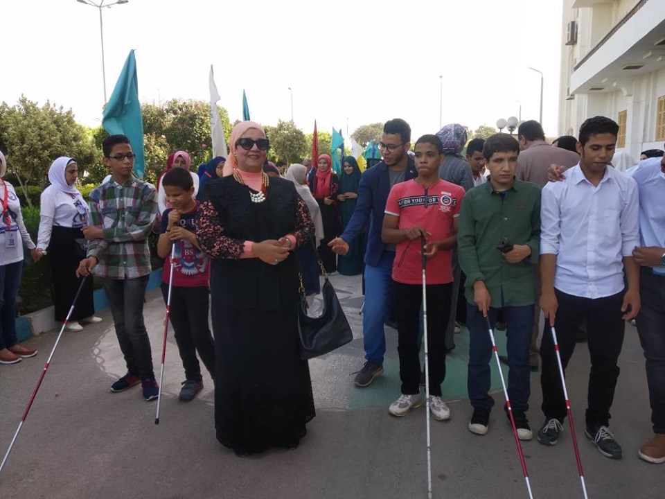 نظمت كلية علوم ذوي الاحتياجات الخاصة بجامعة بني سويف، اليوم الإثنين، بالتعاون مع قطاع خدمة المجتمع وتنمية البيئة ووحدة متحدى الإعاقة، احتفالية خاصة باليوم العالمى للعصا البيضاء.