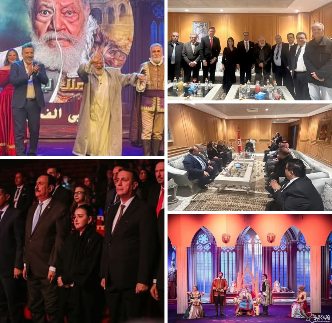 وقد استقبلت معالي وزيرة الشؤون الثقافية التونسية السيدة أمينة الصرارفي، وسعادة سفير جمهورية مصر العربية بتونس السيد باسم حسن، إلى جانب عدد من سفراء الدول العربية، ورئيس لجنة التنظيم والمدير الفني للدورة السيد محمد منير العرقي، وأعضاء الهيئة المديرة للمهرجان، الوفدَ المصري الذي ضم كلًّا من المخرج خالد جلال عضو مجلس الشيوخ ورئيس قطاع المسرح الأسبق، المخرج هشام عطوة رئيس قطاع المسرح الحالي، الفنان القدير يحيى الفخراني، د. أيمن الشيوي مدير فرقة المسرح القومي، ومخرج العرض شادي سرور.