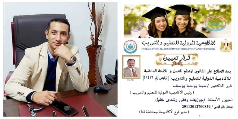 يعتمد رئيس الأكاديمية الدولية للتعليم والتدريب الدكتور مينا يوحنا يوسف