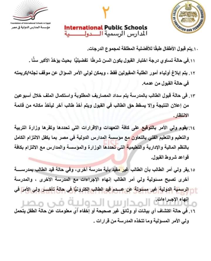 التقديم الكترونيا من خلال صفحة المدارس الدولية فى مصر واسم الفرع