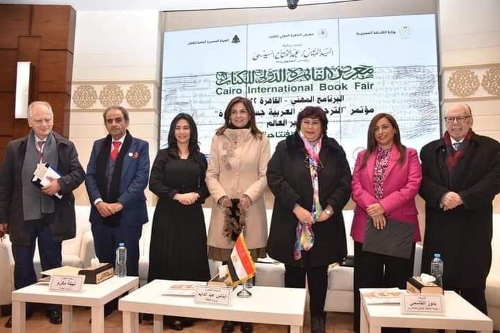 وأشارت الى حركة دعم الترجمة عن العربية التي وضعتها مصر في خطتها 2030 والتي يحتاج لها الآخر تماما كما نحتاجها، ولتتضافر فيها جهودنا من جهات وهيئات حكومية، ومتخصصين ومعاهد وكليات للغات، وناشرين ومترجمين، لنرسم بها مستقبلا يتناسب مع صورتنا الحقيقة التي نعيها جيدا في سماحتها ووسطيتها واحترامها للآخر، ونحتاج للآخر أن يراها كما هي في الحقيقة عبر حركة للترجمة تحمل منارات المعرفة العربية معلقة فوق كتبنا التي سننير بها العالم۔