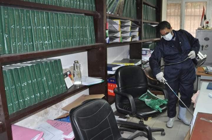 أكد اللواء أحمد راشد محافظ الجيزة أنه في إطار التدابير والإجراءات الإحترازية والوقائية التي تتخذها الدولة للوقاية من فيروس "كورونا" المستجد وبناء على التعليمات الواردة من وزارة التنمية المحلية بدأت مديرية الصحة بالمحافظة برش وتطهير الديوان العام وعدد من المنشآت الخدمية ضمن خطة تطهير وتعقيم جميع المنشآت والمصالح الحكوميه بالمحافظة حرصاً على سلامة العاملين والمترددين عليها.